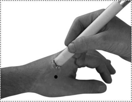«Утюжка», или гладящее воздействие – полынным теплом ведут по ходу меридиана на высоте 1 см над поверхностью кожи.