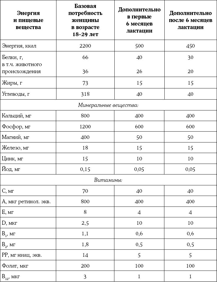 Нормы физиологической потребности в основных пищевых веществах и энергии для кормящих матерей