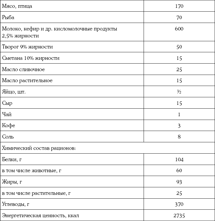 Рекомендуемый среднесуточный набор продуктов питания для кормящих женщин (г, брутто)