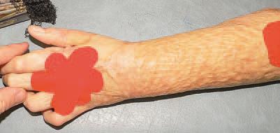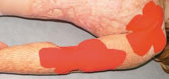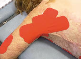 В течение срока госпитализации нами были проведены только три полноценных сеанса тейпирования, поскольку в реабилитацию входили процедуры, которые невозможно было совмещать с тейпированием (рис. 78, а-ж).