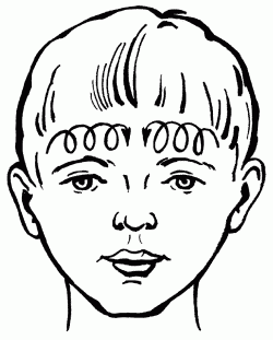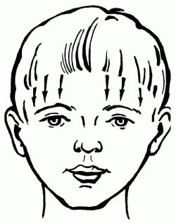 Описание: проводят поглаживание лба от волосистой части головы к линии бровей.
