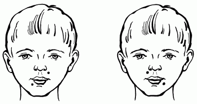 Цель: расслабление скуловых мышц и мышц, опускающих нижнюю губу и угол рта;