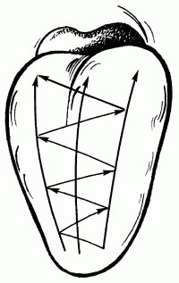 Описание: легкое поглаживание языка из стороны в сторону, в направлении от кончика языка к корню языка.