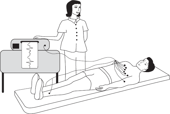 Как записывают электрокардиограмму, знают почти все. На тело человека накладывают 10 электродов: четыре электрода на конечности (два на руки, два на ноги) и шесть электродов на грудную клетку. Для того чтобы электрический сигнал хорошо проводился, кожу в месте контакта с электродом смачивают водой или специальным гелем. Чем лучше контакт, тем лучше будет качество электрокардиограммы.