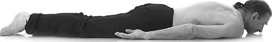 6. На вдохе потяните корпус вперед, одновременно приподнимая его и надавливая руками на ноги так, чтобы стопы приблизились к полу.