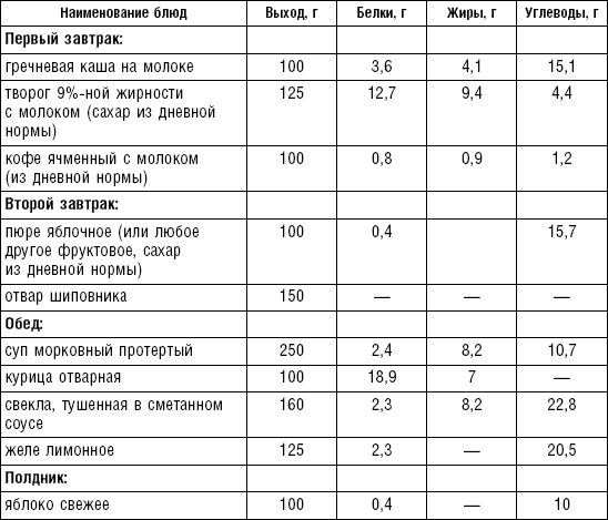 Примерное однодневное меню диеты при инфаркте миокарда (в третьем периоде болезни)