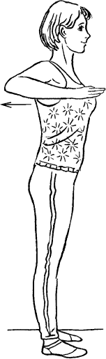 Исходное положение – встаньте прямо и поставьте руки перед грудью, согнув их в локтях.