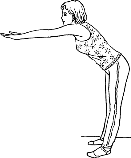 1. Сделайте наклон вперед, вытягивая обе руки перед собой вперед (рис. 495 б).