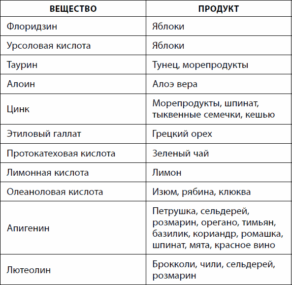 Таблица 35. Вещества, препятствующие образованию конечных продуктов гликирования