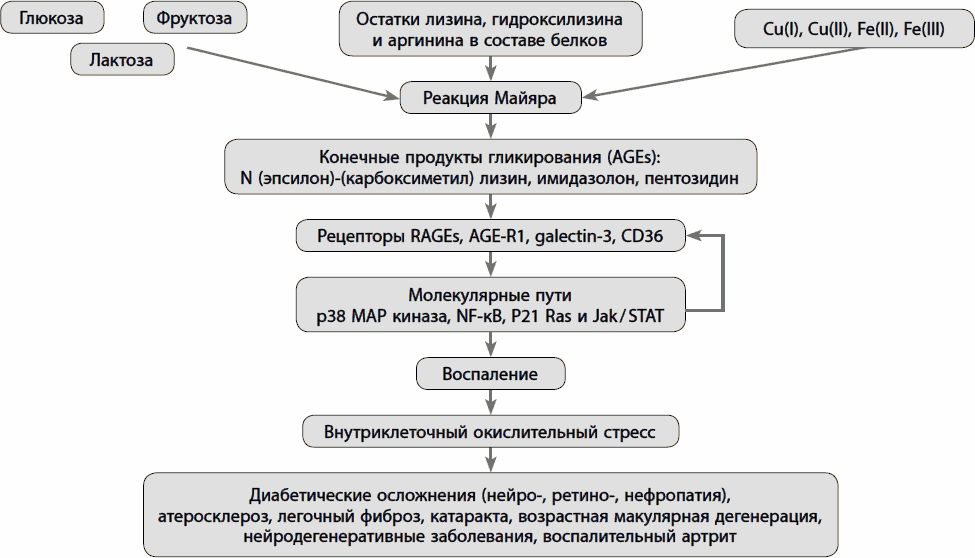 Рис. 6. Конечные продукты гликирования и их роль в хронических заболеваниях