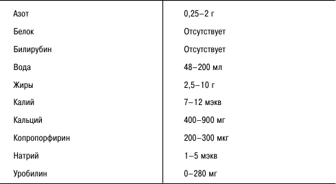 Химический состав фекальных масс (норма, в пересчете на суточное количество)