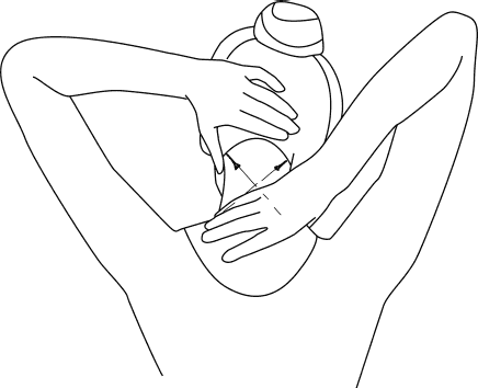 3. Фасциально растяните заднюю поверхность шеи между двумя руками (техника мягкого фасциального растягивания объяснена в Методике).