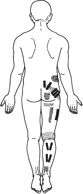 При анкилозах (полной неподвижности сустава) или при очень незначительных движениях массаж малоэффективен. Лучше применять лечение положением и другие виды воздействия. На рис. 69–73 приведены методики точечного массажа при поражениях опорно-двигательного аппарата.
