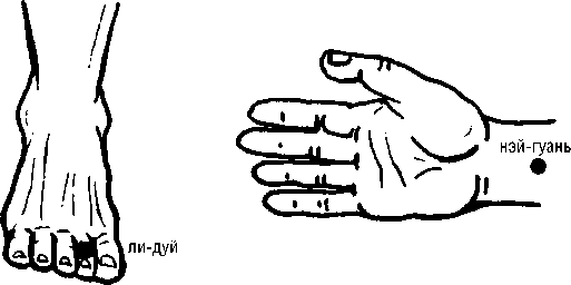 3. НЭЙ-ГУАНЬ (МС-6) находится на 2 цуня выше средней складки лучезапястного сустава, на нижней трети предплечья по ладонной поверхности руки. Желательно после снятия приступа дать больному сладкого чая.