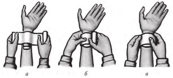 Рис. 1. Наложение давящей повязки: