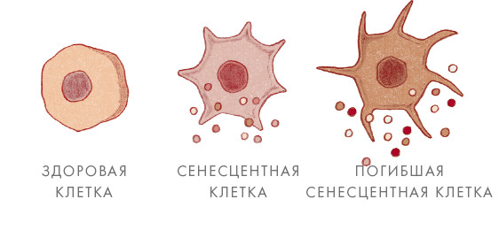 В возрасте пятидесяти лет сенесцентных клеток в нашем организме куда больше, чем в молодости, и с годами они продолжают накапливаться. Но действительно ли сенесцентные клетки вызывают старение? Это один из вопросов, на которые пытаются ответить ученые. Некоторые исследования показывают, что уничтожение сенесцентных клеток у мышей предупреждает такие возрастные изменения, как катаракта и дряхлость.