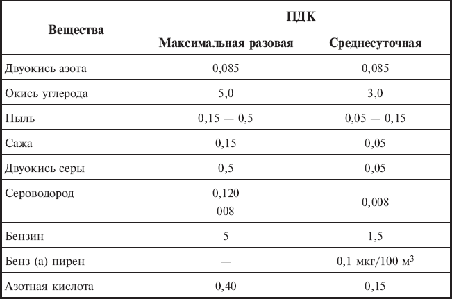 Предельно допустимые концентрации веществ, загрязняющих атмосферу.