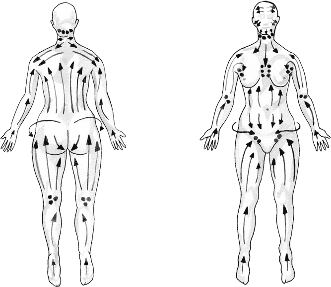 Растирание должно выполняться длинными движениями в сторону лимфатических узлов. Следуйте графику, приведенному ниже: