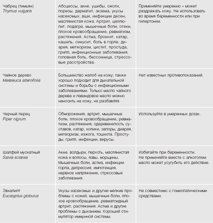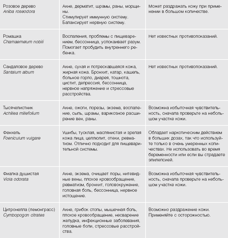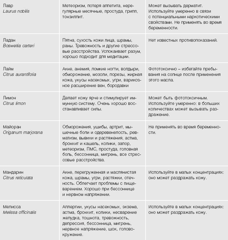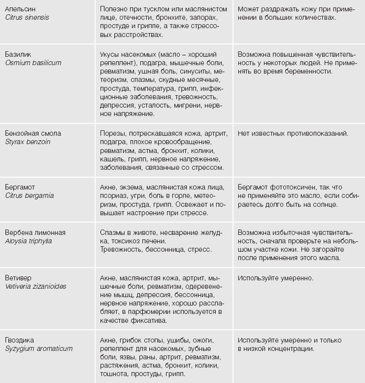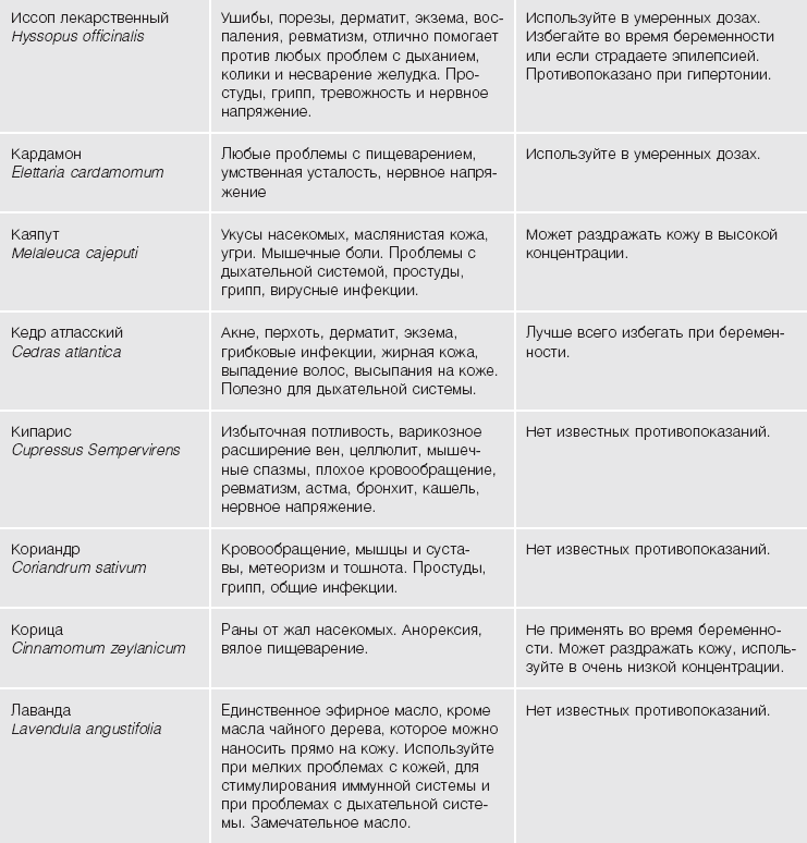 Когда эфирные масла растворяют в растительных маслах, они сохраняют всю свою энергию и, соответственно, свойства. После того как смесь масел наносят на кожу натирающими движениями, вырабатывается тепло, которое заставляет маленькие молекулы эфирного масла отделяться от масляной основы (растительного масла, в котором они растворены) и спускаться по порам волосяных фолликулов, взаимодействуя с сальными железами и в следовых количествах попадая в кровеносную систему. Чистая кожа и энергичный массаж – лучший способ помочь эфирным маслам попасть глубоко под кожу. Впрочем, не забывайте: насколько бы натуральными ни были эфирные масла, они все равно остаются сильнодействующими химическими веществами, так что к ним нужно относиться с уважением и использовать рационально. Их нельзя наносить непосредственно на кожу, за исключением лавандового масла и масла чайного дерева; эти два масла содержат все необходимое для натуральной и эффективной первой помощи. Все остальные эфирные масла нужно растворять либо в жире, либо в алкоголе, так как в воде они нерастворимы.