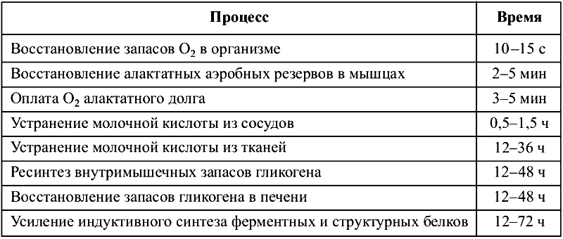 Динамика восстановительных процессов после значительной физической нагрузки представлена в таблице 8.