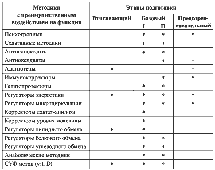 Из предложенных методик составляется комплекс средств, необходимых для достижения поставленных целей на соответствующем этапе (см. физиологическое действие методик, гл. IV).