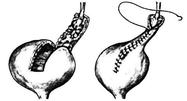 Однако при повреждении юкставезикального отдела мочеточника или его интрамуральной части, особенно при частичной его резекции, когда невозможно наложение анастомоза «конец в конец» или когда происходит его натяжение при наложении анастомоза (дефект до 5 см), возможно закончить операцию пересадкой мочеточника в мочевой пузырь – уретероцистонеоанастомозом. При этом мочеточник проводится в просвет мочевого пузыря по сформированному подслизистому тоннелю, длина которого должна быть не менее четырех–шести диаметров мочеточника.