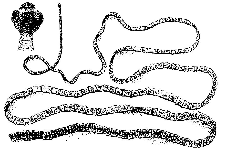 Длина их тела велика – до 12 м. Оно состоит из головки–сколекса и многотысячных члеников (хотя есть исключения: например, у эхинококка их не более четырех). Часто они имеют несколько синонимичных названий: лентецы, цепни, солитеры.