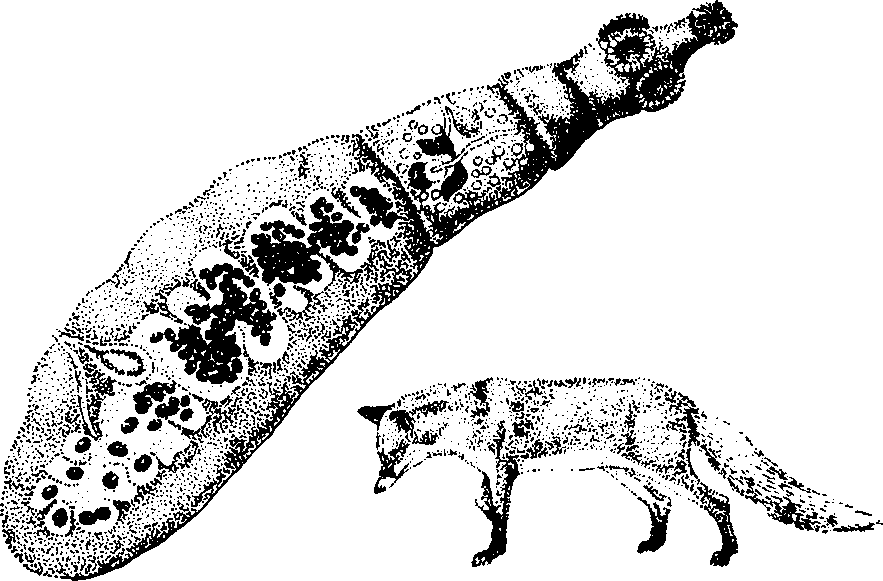 Не менее опасны ленточные черви гораздо меньших размеров. Это эхинококк и альвеококк (вызывают, соответственно, эхинококкоз и альвеококкоз). Дело в том, что человек является исключительно промежуточным хозяином, то есть в нем развивается финнозная стадия, разрушающая внутренние органы. К тому же некоторые финны эхинококка (окончательный хозяин – собака и другие хищники) достигают массы несколько десятков килограммов (правда, у рогатого скота) и в окружности около 50 сантиметров. Этот паразитический червь поражает легкие, трубчатые кости, печень и даже мозг.