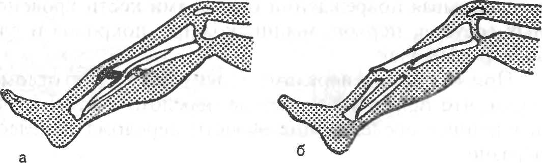 Рис. 55. Виды переломов, а — закрытый; б — открытый.