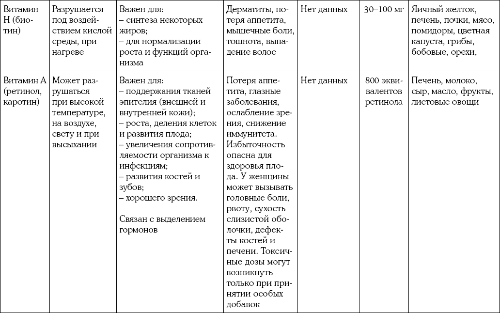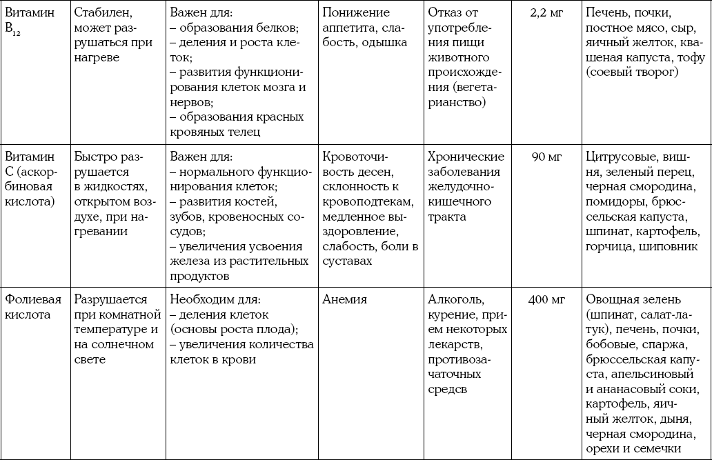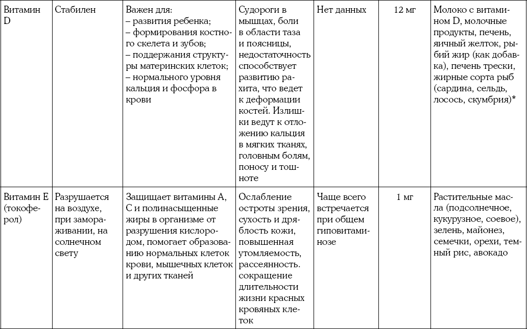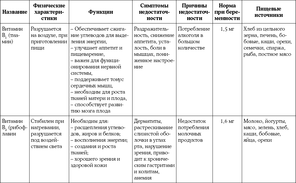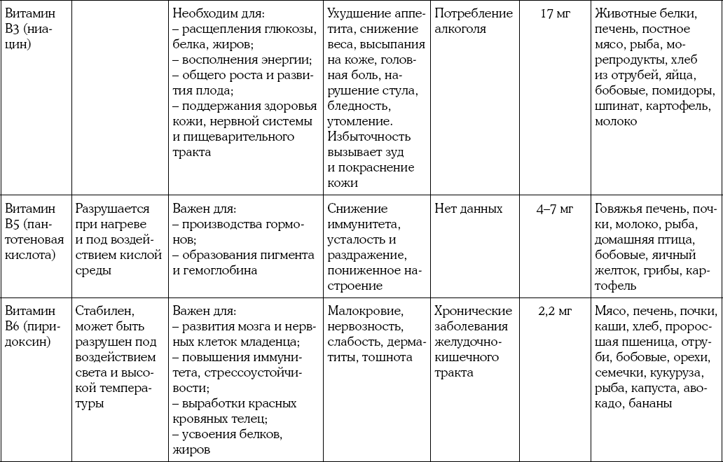 Приложение 2. Таблица витаминов для будущей мамы