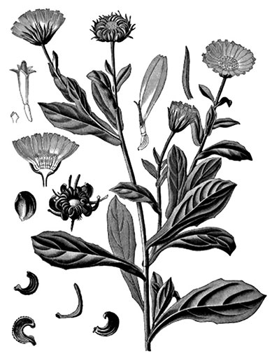 Спиртовую настойку календулы (ноготки лекарственные) используют в примочках и полосканиях при воспалительных процессах кожи и десен. Ее готовят из расчета 20 частей соцветий ноготков на 100 частей 90– или 70 %-ного спирта, настаивают 10 дней в темном месте, процеживают и отжимают.