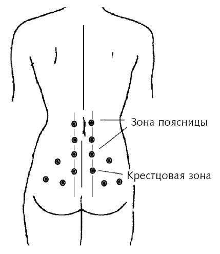При поясничном радикулите для терапии используются эти же зоны.