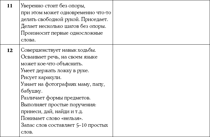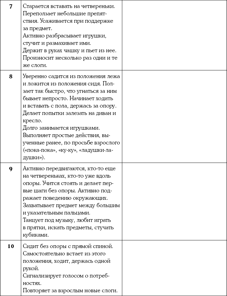 19. Запишите в таблицу, когда малыш научился делать перечисленные действия