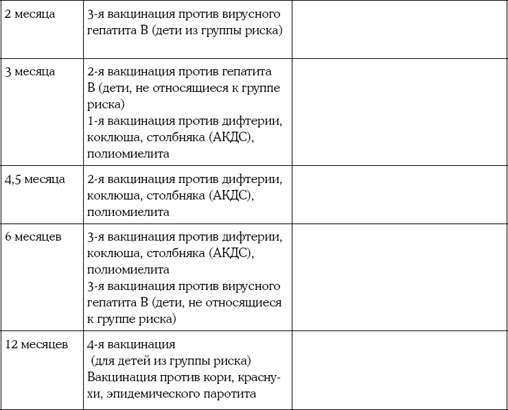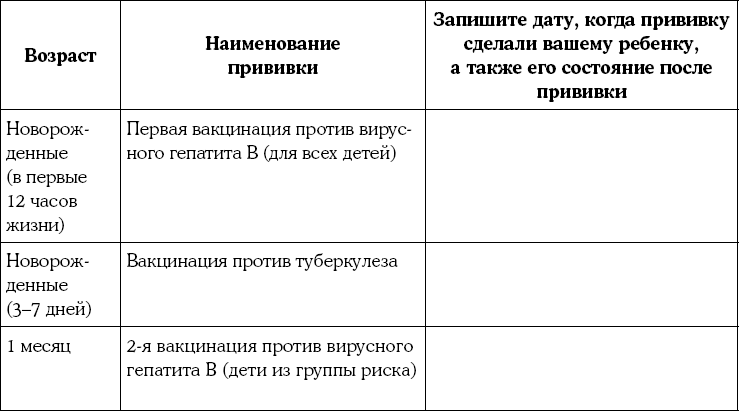 4. Календарь прививок для ребенка до 12 месяцев
