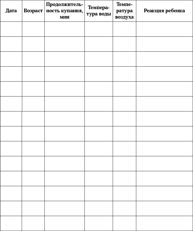 12. Если вы решили проводить закаливание ребенка, советую вам вести следующую таблицу, она облегчит вам запоминание условий этого процесса