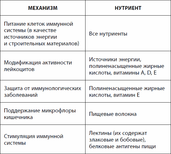 Таблица 13. Механизмы влияния диеты на иммунитет