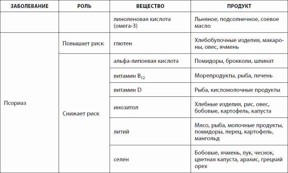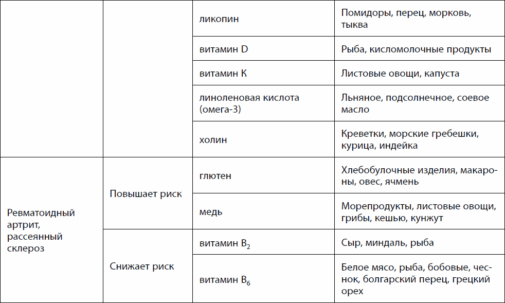 В табл. 14 приведены отдельные питательные вещества, влияющие на риск аутоиммунных заболеваний.