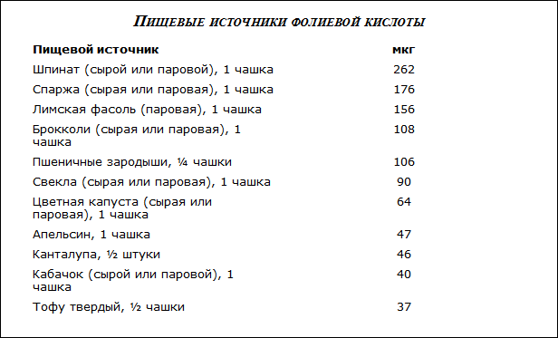 Пищевые источники фолиевой кислоты