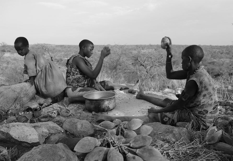 Мадуру уходит в сторону холмов, а Эста вступает в оживленный спор с пятью другими женщинами. Они решают, где нужно выкапывать клубни. Наконец они выбирают место и вместе направляются в ту сторону. С ними идут юная девушка и маленький мальчик. Их набор инструментов отличается простотой и практичностью. Каждая женщина имеет при себе заостренную палку-копалку длиной примерно метр, нож для обтесывания палки, и тканевую перевязь, перекинутую через плечо. Одна из женщин несет угли из своего очага, чтобы днем приготовить пищу в поле. Эста несет в своей перевязи дочь.