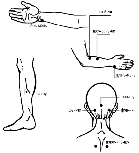 Методика точечного массажа седативная, успокаивающая, расслабляющая (рис. 103):
