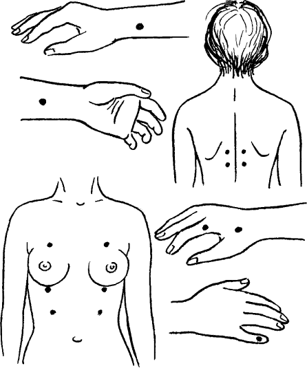 Рис. 152. Точечный массаж груди для увеличения лактации