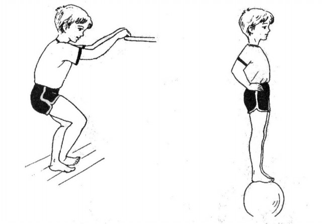 * Стояние на большом туго набитом мяче (медицинболе) (рис. 85).