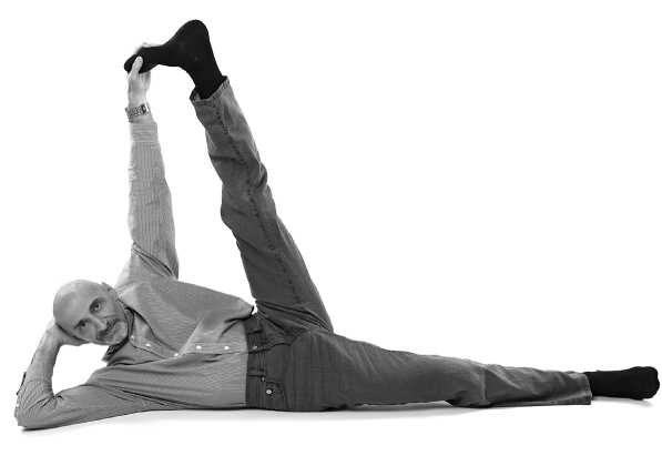 8. Правую руку поднимите и возьмите себя за пальцы правой ноги.