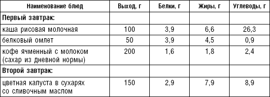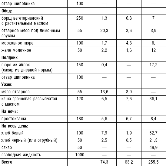Общая масса рациона 1700 г. Энергетическая ценность 1200–1400 ккал.