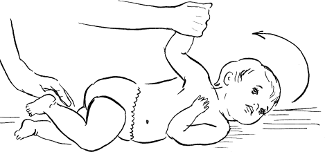 • Возьмите его за левую ручку, затем медленно подтолкните ребенка с живота на спину в правую сторону (рис. 385).