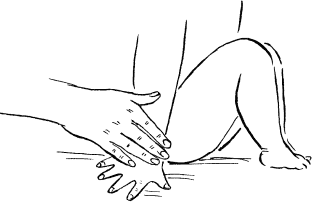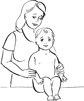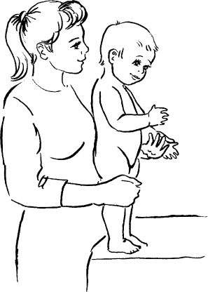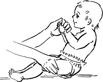 Исходное положение ребенка и мамы – малыш сидит на столе, плотно прижавшись спинкой к вашему животу, ноги полусогнуты. Ваши руки лежат на локтевых суставах ребенка (рис. 386).