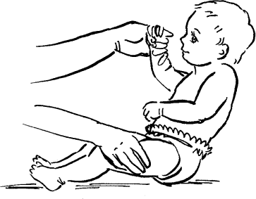 • Медленно поднимайте ребенка до положения сидя (рис. 391).