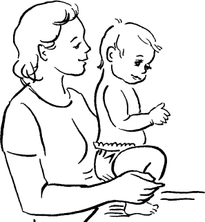 Примечание. Осторожно опускайте ребенка на стол, придерживая его спинку и избегая ушиба головы.
