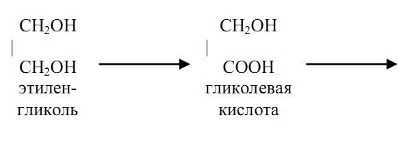 Трансформация этиленгликоля в организме происходит по следующей схеме: