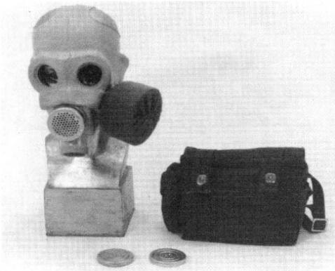 Противогаз ПМГ-2. Фильтрующе-поглощающая коробка ЕО- 62к имеет форму цилиндра высотой 8 см и диаметром 11,2 см. шлем – маска ШМ-66 Му состоит из корпуса, очкового узла, обтекателей, клапанной коробки и переговорного устройства разборного типа. В лицевой части сделали сквозные вырезы для ушных раковин, что обеспечивает нормальную слышимость.